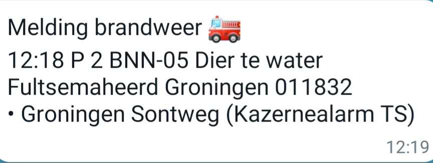 "We kregen een melding dat er een eend op het eilandje aan een kant met de vleugel vast zat in een boom. Het lukte de eend in eerste instantie niet om zich te bevrijden en we belden de brandweer voor assistentie. Uiteindelijk heeft de eend zich wel kunnen bevrijden en konden we de brandweer afmelden."Medewerkster Dierenambulance tegen half twee vanmiddag.