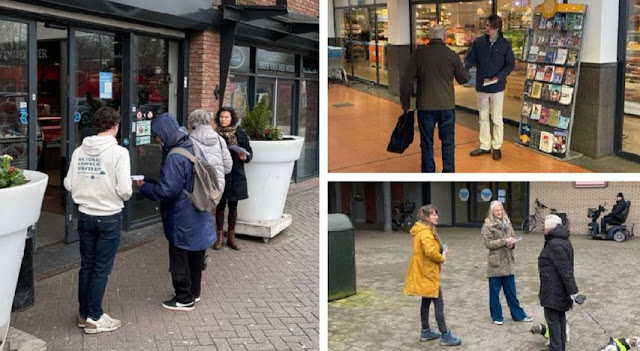 Raadsleden #raad050 flyeren in #Beijum om wijkbewoners te wijzen op het Wijkgesprek Beijum op woensdag 13 maart 19.30 uur in #Heerdenhoes als gemeenteraadsleden met Beijumers in gesprek gaan over hun wijk gemeenteraad.groningen.nl/actueel/gemeen